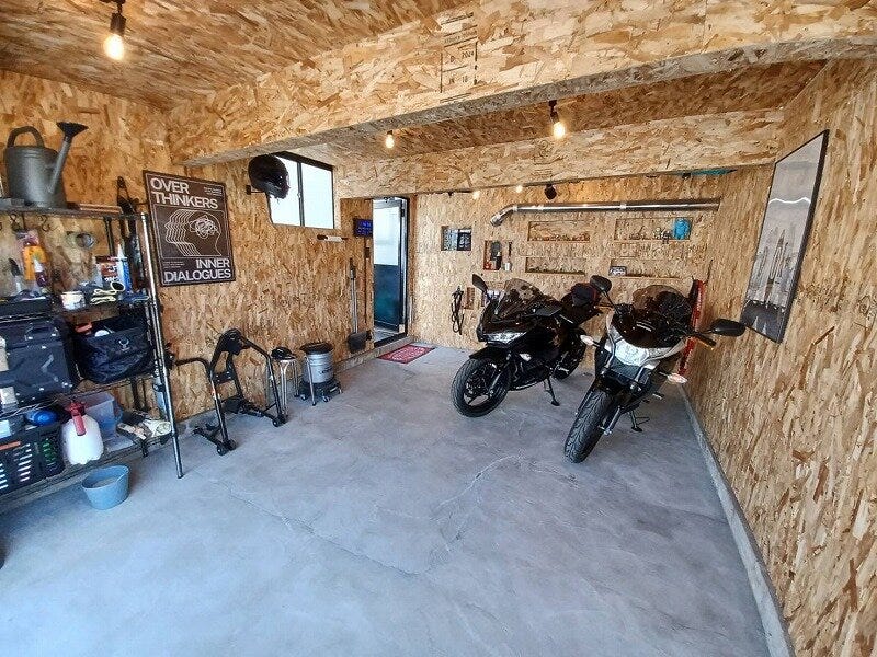 まずは断熱材を貼り、下地を組み、合板を貼り…なかなか古めのオーダー車庫で、