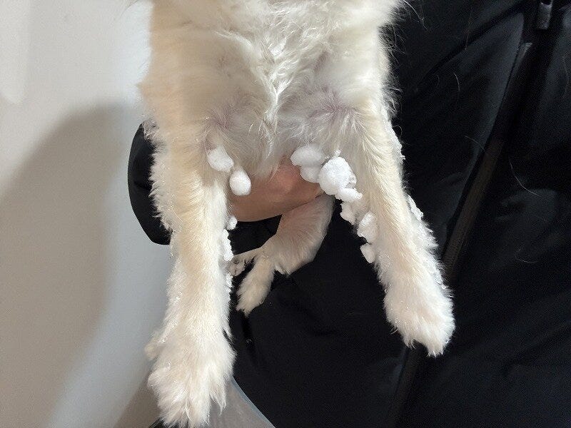 そして散歩後は冬恒例の雪玉だらけの姿に🐶