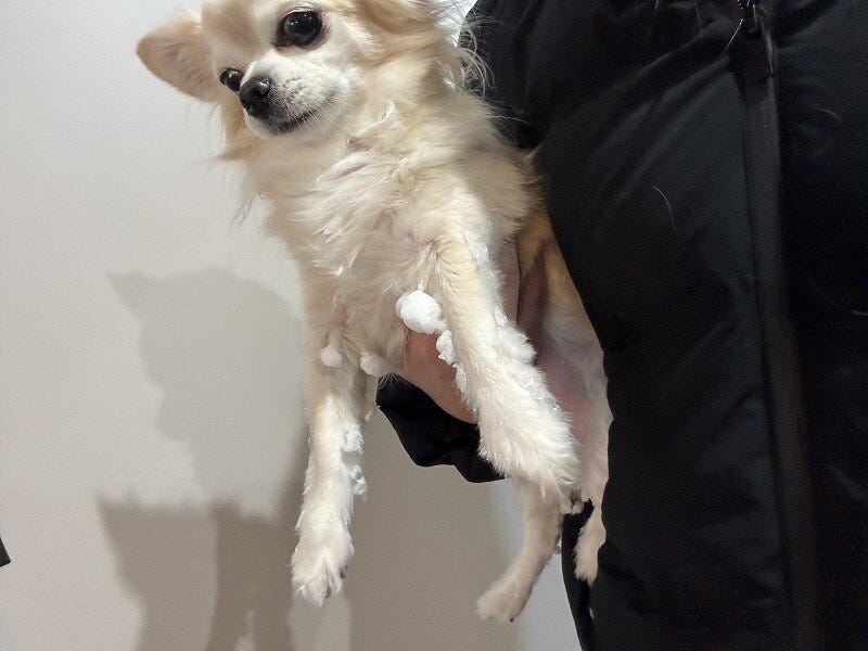 雪の日のお散歩、雪玉問題🐶