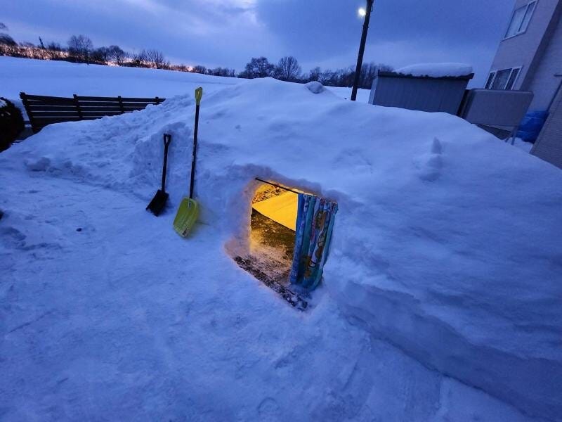 休日のひとコマ・雪でかまくら作り⛄